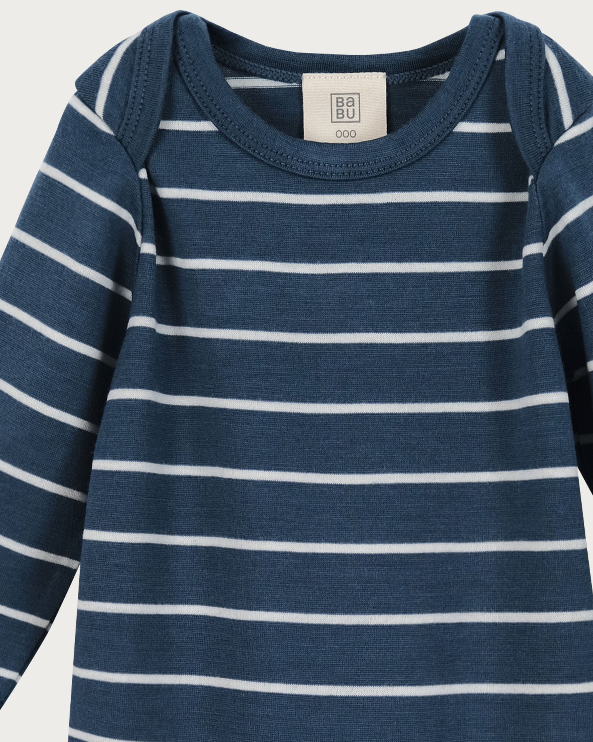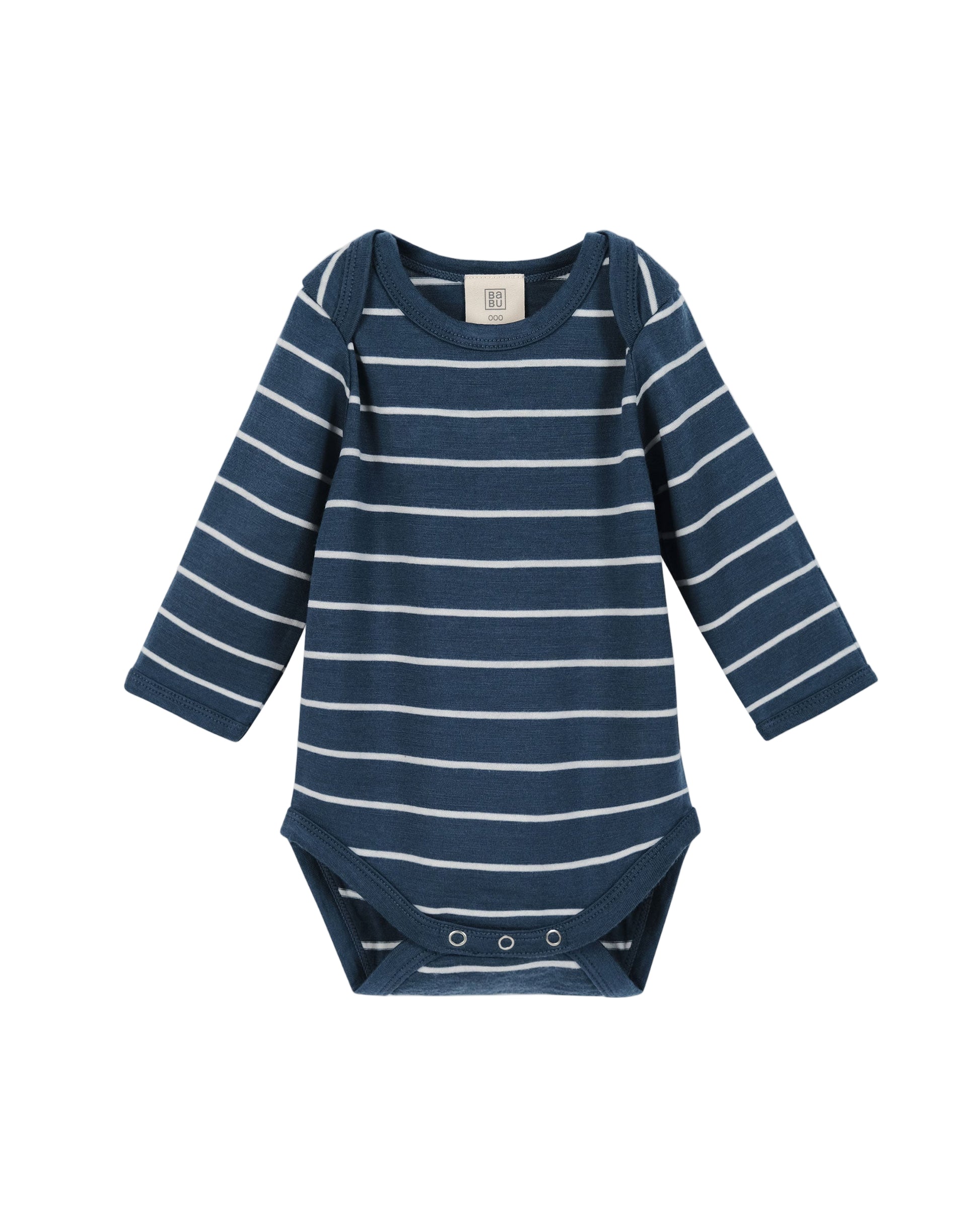 Babu Merino Baby Long-sleeve Bodysuit I Denim Stripe