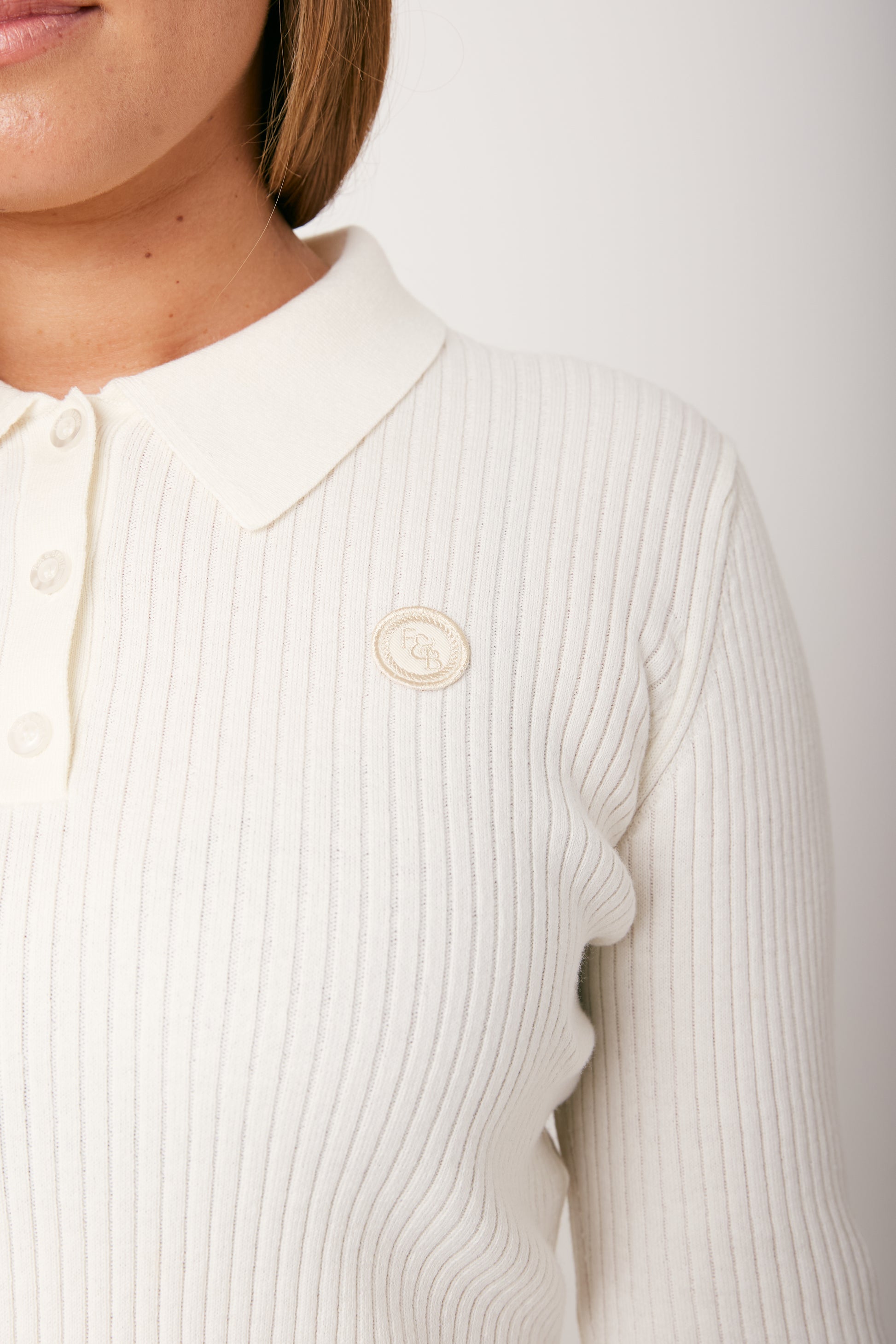 Fox & Birdie Merino Cotton Long-sleeve Ribbed Polo Tee I Midnight Blue